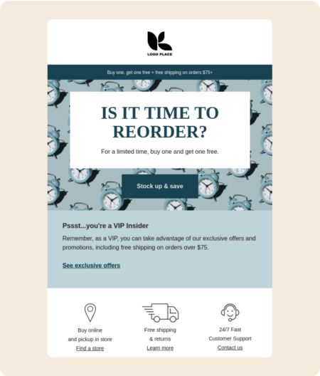 Keep things exciting with tailored product recommendations, unique discount codes, and loyalty credits that shine across email, SMS, and mobile push notifications.