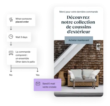 Les modèles e-commerce propres à Shopify sont intégrés. Vous avec besoin de quelque chose en particulier ? Créez des automatisations personnalisées avec autant de conditions, de fractionnements, d’e-mails et de SMS que nécessaire.