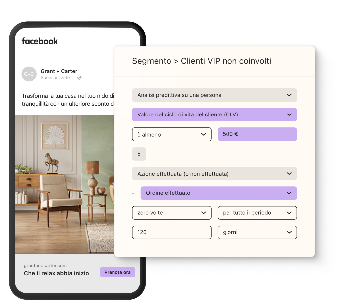 Concentra la vendita incrociata sugli acquirenti recenti proponendo loro prodotti che sai che apprezzeranno e crea gruppi di pubblico simile a partire dai tuoi migliori clienti.