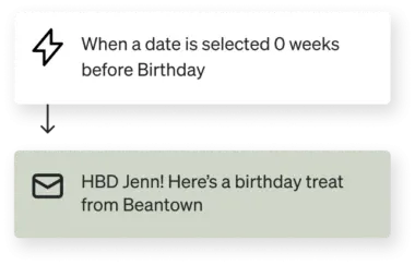 Once you’ve started collecting this information, you can build a date-based flow that is triggered by the Birthday date property. Most brands keep this flow simple, to 1-2 messages.