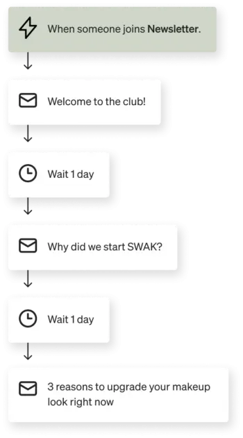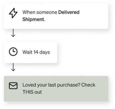 Cross-sell flows are a great way to automatically recommend products that someone might like based on what they’ve already purchased. The key here is to give your customer time to use the product they just purchased before recommending more products.