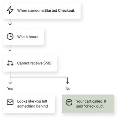 Keep the customer experience in mind and use SMS for time-sensitive messages that encourage subscribers to take a clear action. For these retention flows, you should test different configurations of email and SMS to see what works best with your customers. A/B test 2 flow branches: 1 where you lead with SMS and follow up via email, and 1 where you lead with email and follow up with an SMS.
